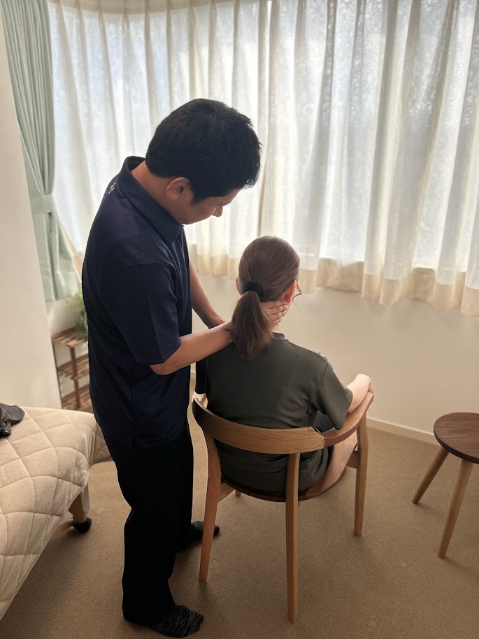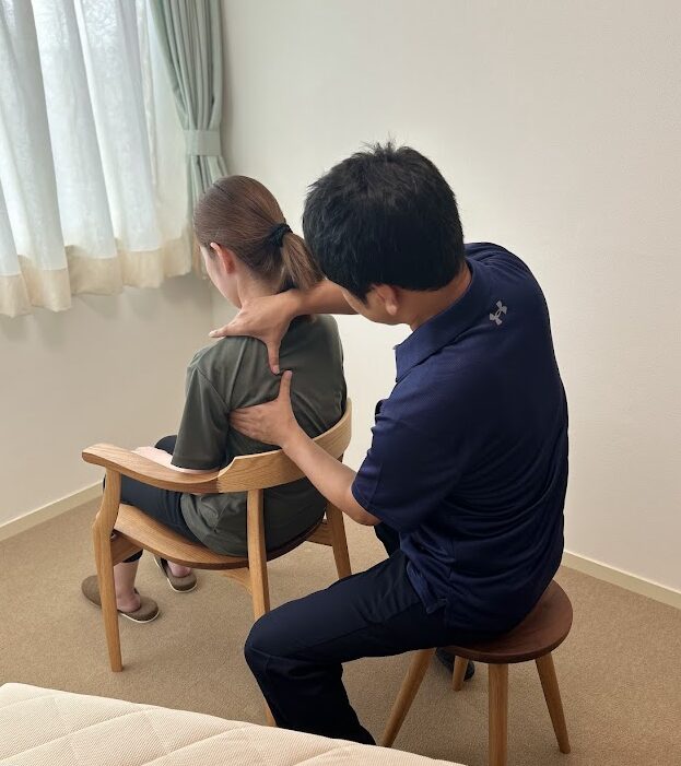「肩甲帯浮かしコース」は椅子に座ったまま受けられるコースです。